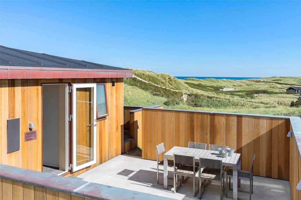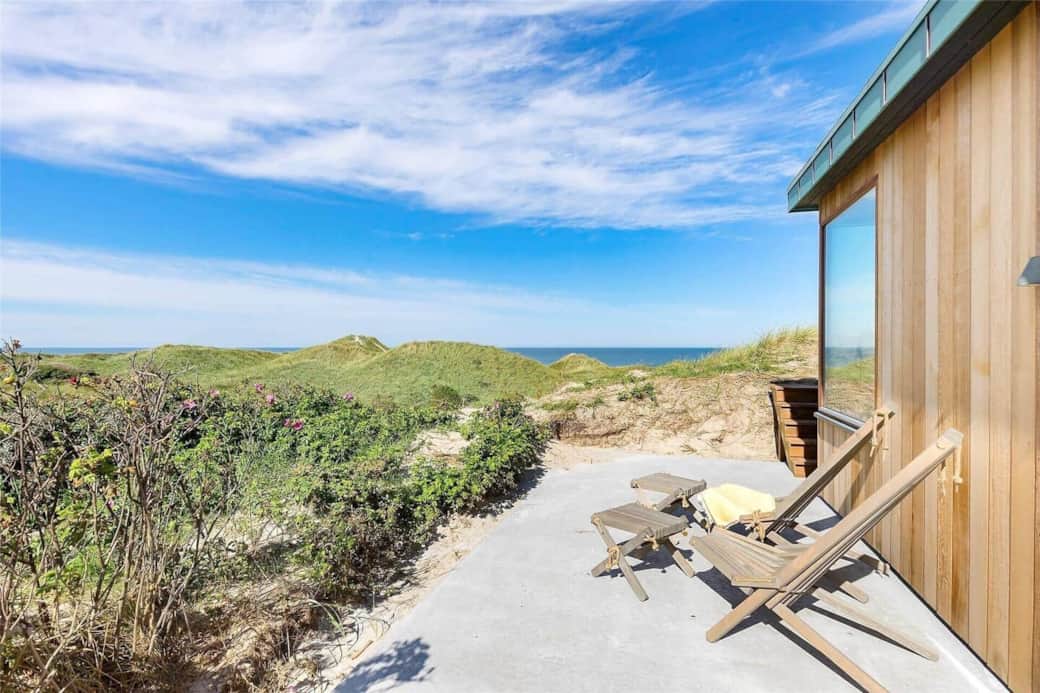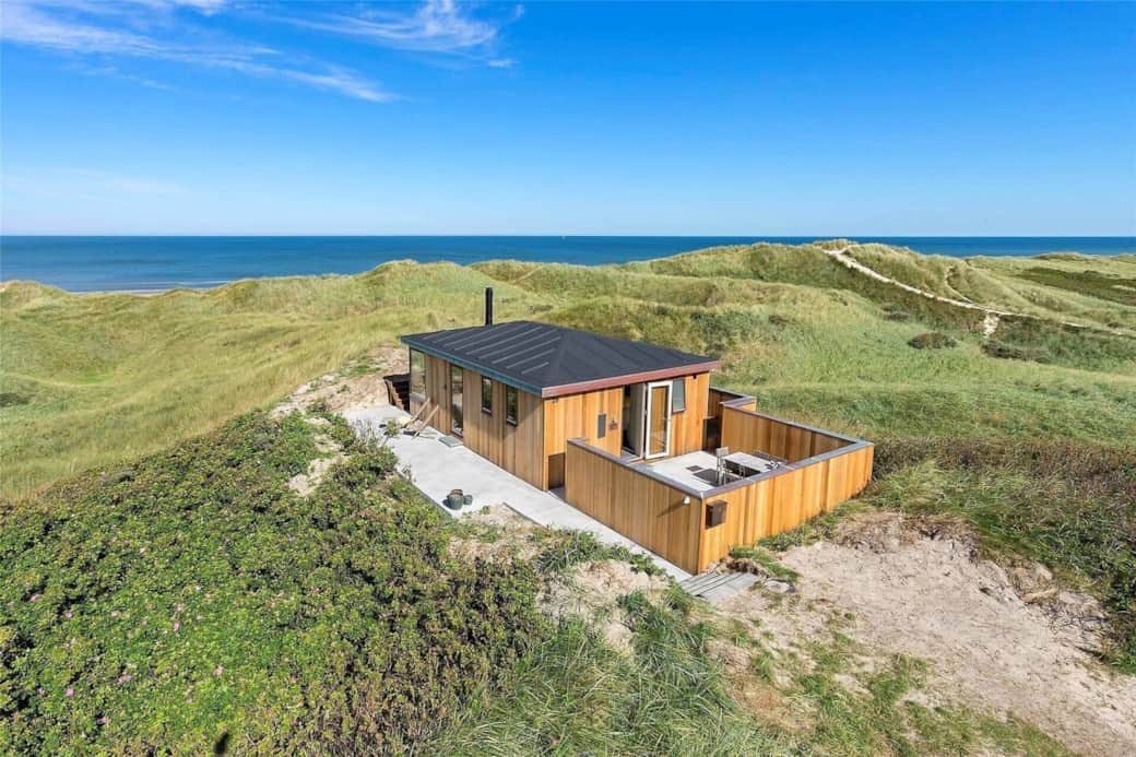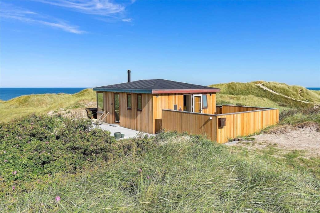 Dette eksklusive hus er bygget med respekt for naturen, så det passer perfekt ind i de unikke omgivelser. I kan endda nyde udsigten over Vesterhavets blå vand og brusende bølger, for stranden ligger blot få hundrede meter væk. Planløsningen består kort fortalt af et lækkert badeværelse og et ditto soveværelse til to personer. Yderligere to personer kan sove i køjesengen, der ligger i en afskærmet niche i det flotte opholdsrum, som også byder på en spiseplads, polstrede bænke og et åbent køkken.